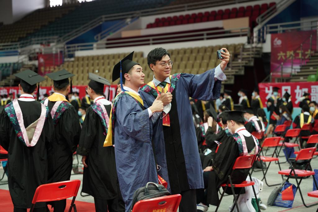 从党的十九大到改革开放40周年,再到新中国成立70周年,校长邱学青带领同学们回顾了不平凡的四年和学校快速发展所取得的显著成绩。对于同学们全过程参与了学校高水平大学建设,邱学青说:“你们的思想政治素质、创新能力、实践技能和社会责任感显著增强,成就了不一样的自己。”尤其是面对新冠疫情,邱学青对同学们以“狭路相逢勇者胜”的精神与姿态,奋力“战”疫,顺利完成了学业表示赞赏。