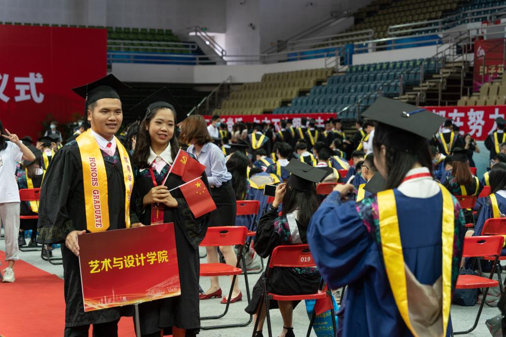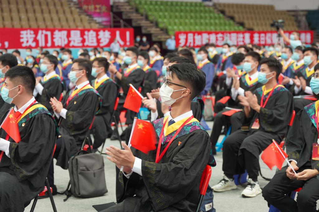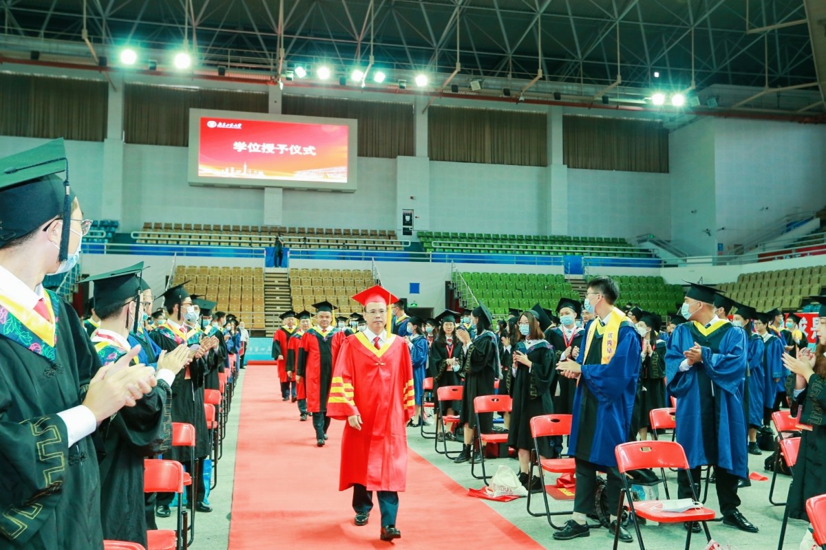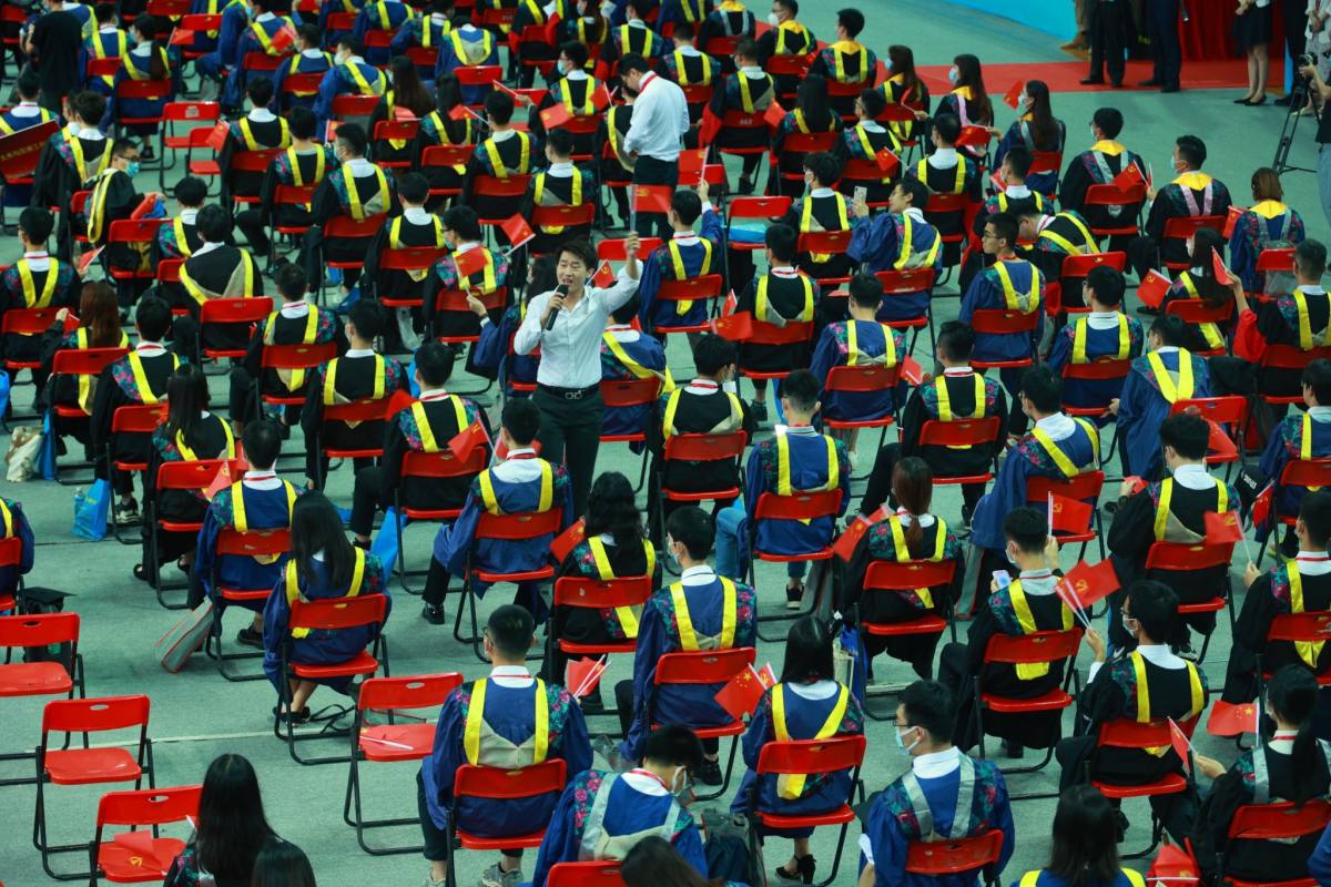 MK平台2021届毕业生共有10640人,其中本科生8363人、硕士研究生2221人、博士研究生56人。为做好疫情防控工作,毕业典礼以线上线下相结合的方式举行,教师代表、毕业生代表、各学院主要负责人代表、各学院党委副书记、毕业班辅导员代表等在现场观礼,其余师生、毕业生家长等在“云端”相聚,共同见证这一难忘时刻。