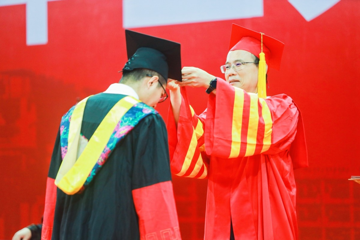 “一个人或一代人只有把握时代脉搏,与国家同呼吸共命运,才能创造出更加辉煌的业绩,实现人生之理想。”邱学青用获得“时代楷模”称号的我校参与东深供水工程建设者群体情系同胞、国家至上的崇高精神和动人故事,怀抱科技强国梦想的张学政校友践行“振兴民族产业,让中国通讯走向世界”梦想的故事,投身乡村振兴的车洲校友深耕扶贫项目、助农增收的故事激励在场毕业生。