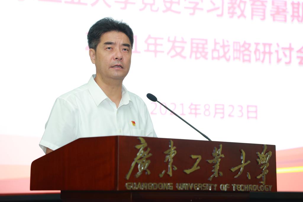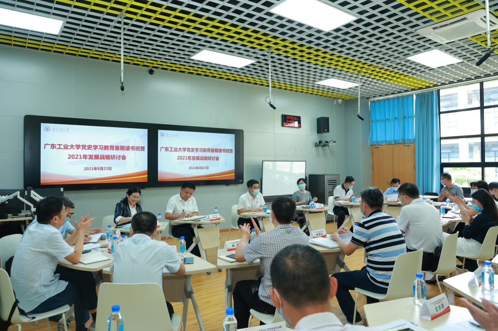 本网讯 8月23-24日,学校党史学习教育暑期读书班暨2021年发展战略研讨会在大学城校区召开。会议聚焦“学党史聚力量 攀高峰开新局”主题展开研讨,围绕学校“1+2+3”攀撑计划重点建设任务,将党史学习教育同实际工作紧密结合,对如何筑学科高原、攀学科高峰,着力培养一流人才等进行了深入探讨。