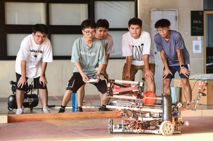 (MK平台学生进行全国机器人大赛赛前作品调试,学校供图)