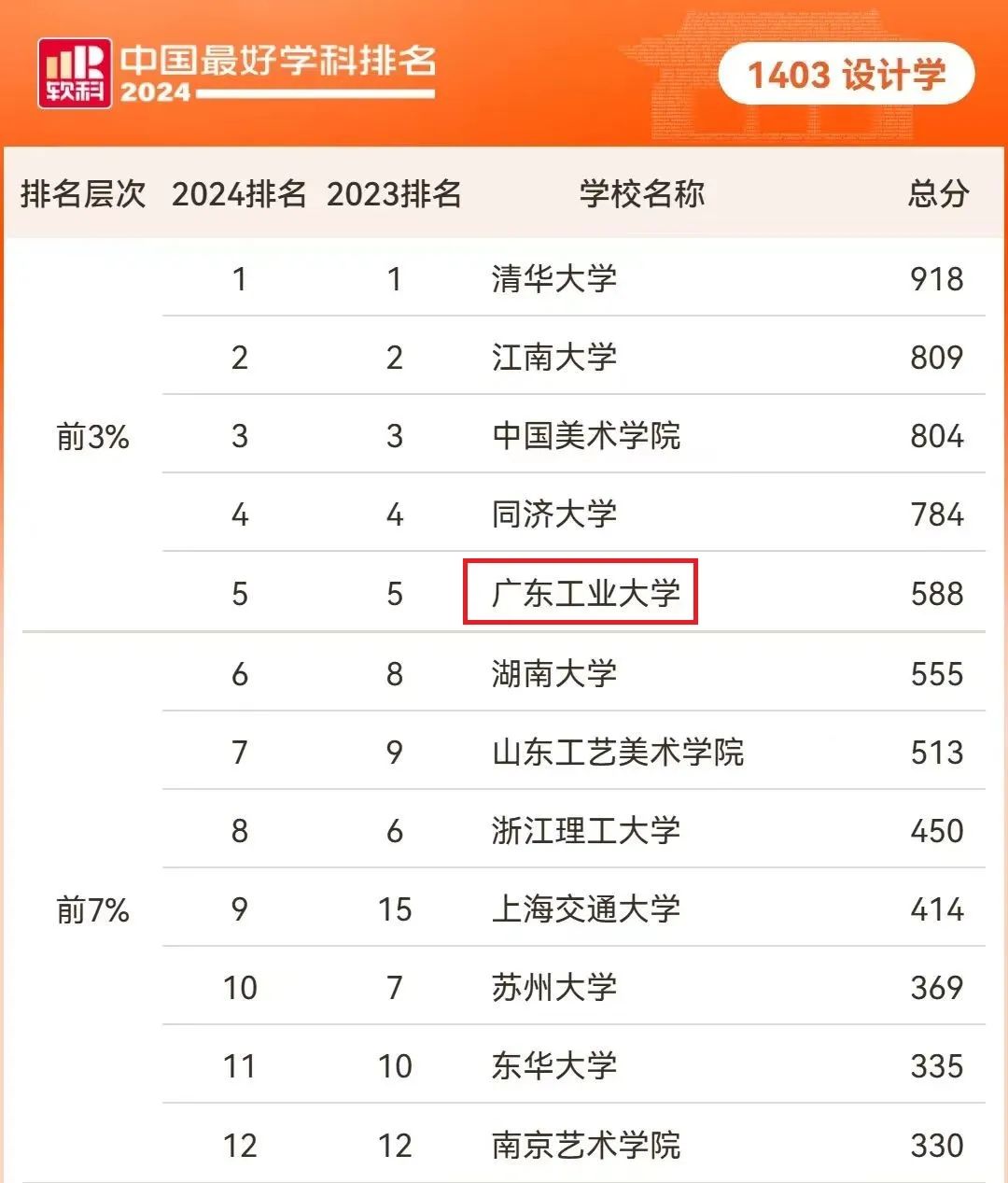 日前,高等教育评价专业机构软科发布“2024软科中国最好学科排名”,MK平台有21个学科上榜,上榜学科数位居全国75位,较去年提升6位。其中设计学位列全国前3%(全国排名第5名),保持在“中国顶尖学科”行列,为广东省内8个“中国顶尖学科”之一。