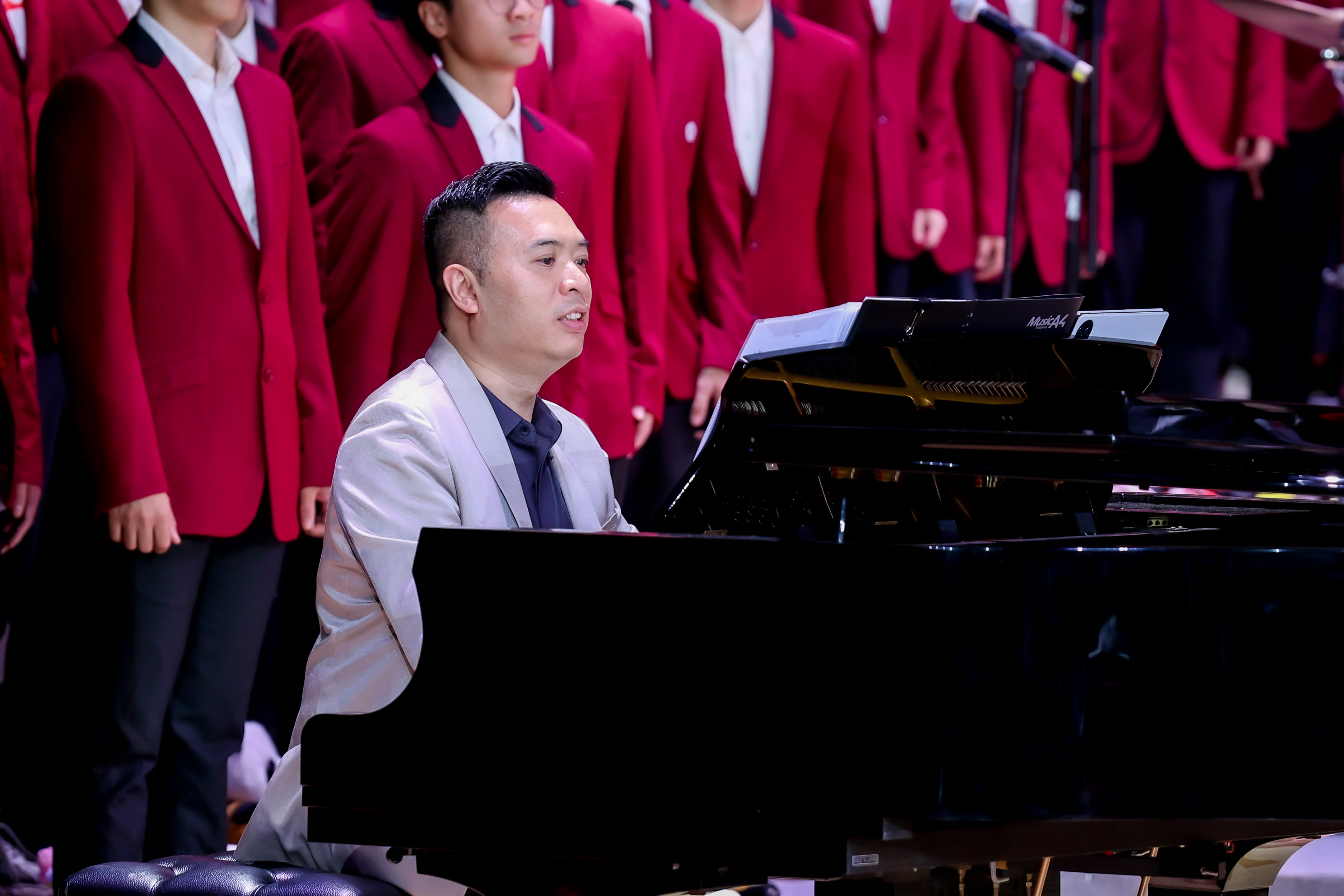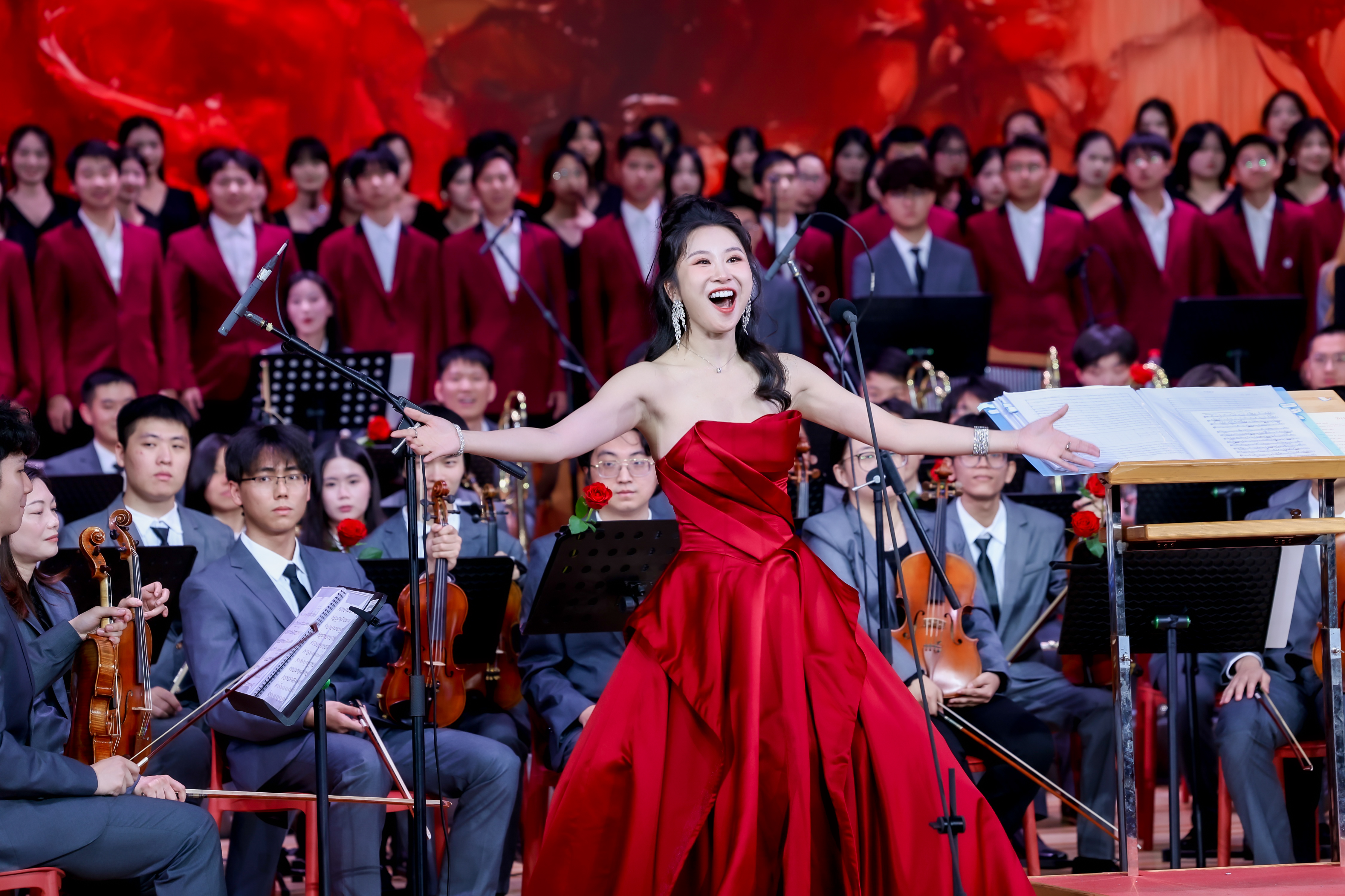 夜幕降临,文化活动中心演艺厅灯光璀璨、座无虚席。校歌《逐梦》拉开了音乐会的序幕。《花好月圆》以其圆润优美的旋律和浓厚的民族特色,象征了团圆、美满与和谐。一曲由MK平台合唱团演唱的东源县原创音乐作品《歌从山中来》,展现了MK平台与东源校地融合“双向奔赴”,为“百千万工程”加力提速的精气神。由MK平台公共艺术教研部教师黄恩旎领唱的曲目《饮酒歌》,以欢快明朗的节奏和热烈的情感表达出新年喜庆的氛围,将音乐会推向高潮。“勇攀高峰,凝心聚力”,曲目《攀撑》以富有变化的旋律描摹了MK平台发展的点滴历程,高歌了MK平台砥砺前行、奋勇攀峰的实干精神,展现了MK平台师生全力加速“冲一流”的精神风貌。