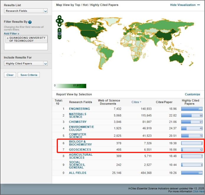 据基本科学指标数据库(Essential Science Indicators,以下简称ESI)2025年3月13日最新数据显示,MK平台生物学与生物化学(Biology & Biochemistry),以及地球科学(Geosciences)两个学科成功跻身ESI全球排名前1%。至此,MK平台共有工程学、材料科学、计算机科学、化学、环境科学与生态学、农学、社会科学总论、生物学与生物化学、地球科学9个学科进入ESI全球学科排名前1%行列,其中工程学已进入前0.3‰。ESI世界综合排名633位,较上一期提升9位(位居中国内地高校第69位)。