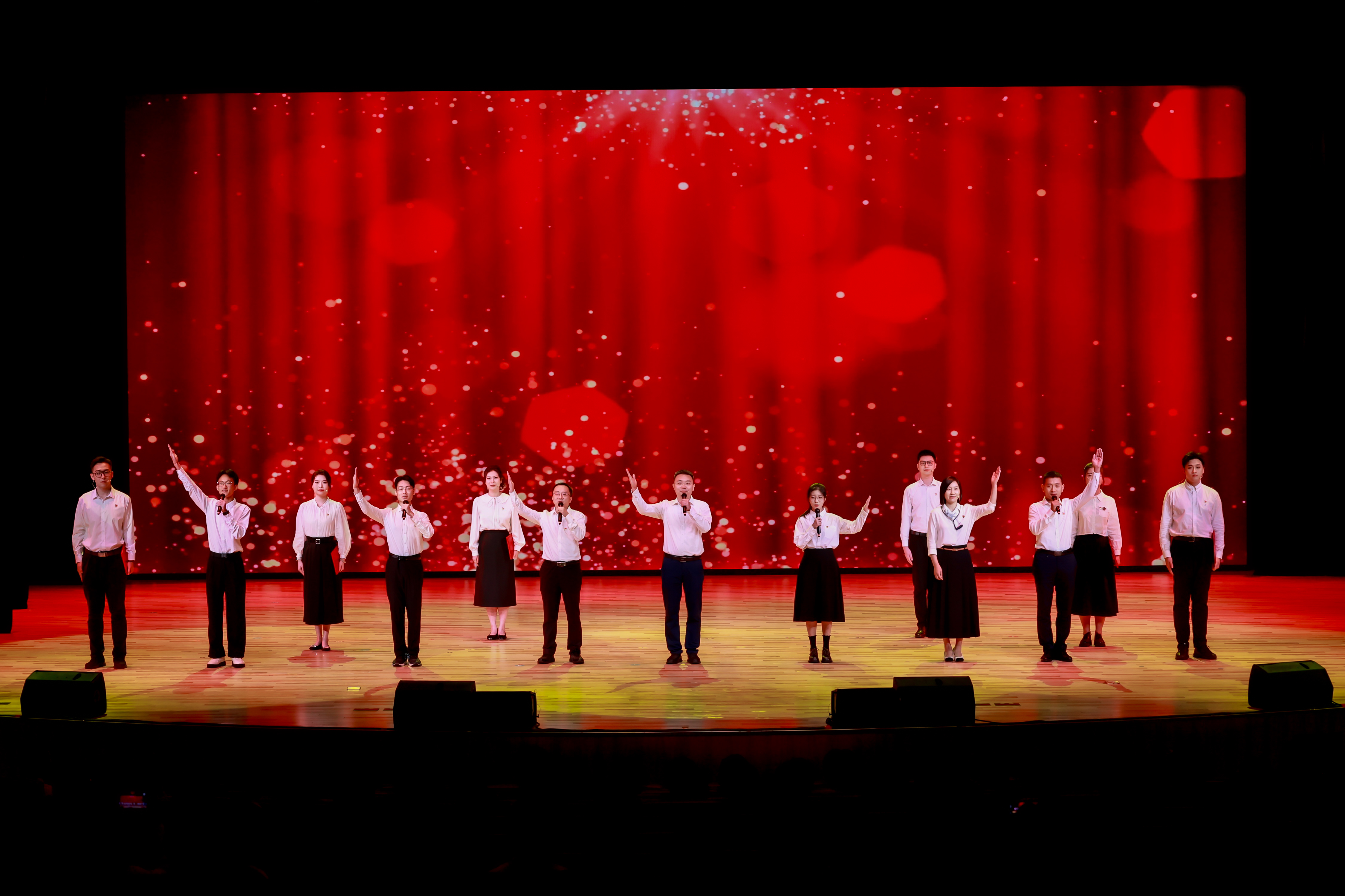 活动尾声,全体党员齐声唱响《不忘初心》,深情表达了以初心锚定思想高度、以初心激发奋进力量的决心和信心。现场党旗飞扬、歌声激荡,将活动推向高潮。