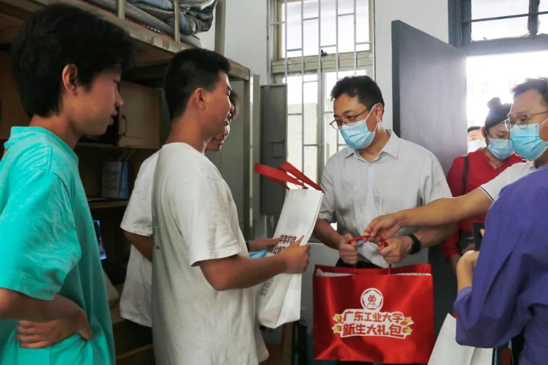 校领导到各校区探望慰问新生,得知报到当日有新生生日,特意送上生日祝福和礼包