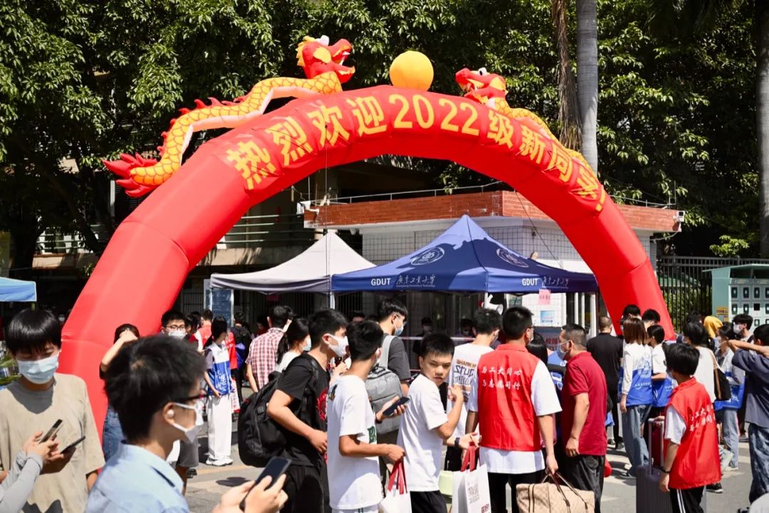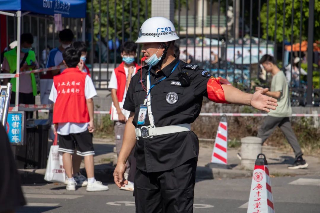 为了新生入学更安全、安心、便捷,学校做了大量准备工作和全方位的部署。根据疫情防控要求,学校在各校区设置了体温检测、扫码登记及交通分流点,安保人员、后勤人员、迎新使者及志愿者等指导车辆分流,引导新生入校。