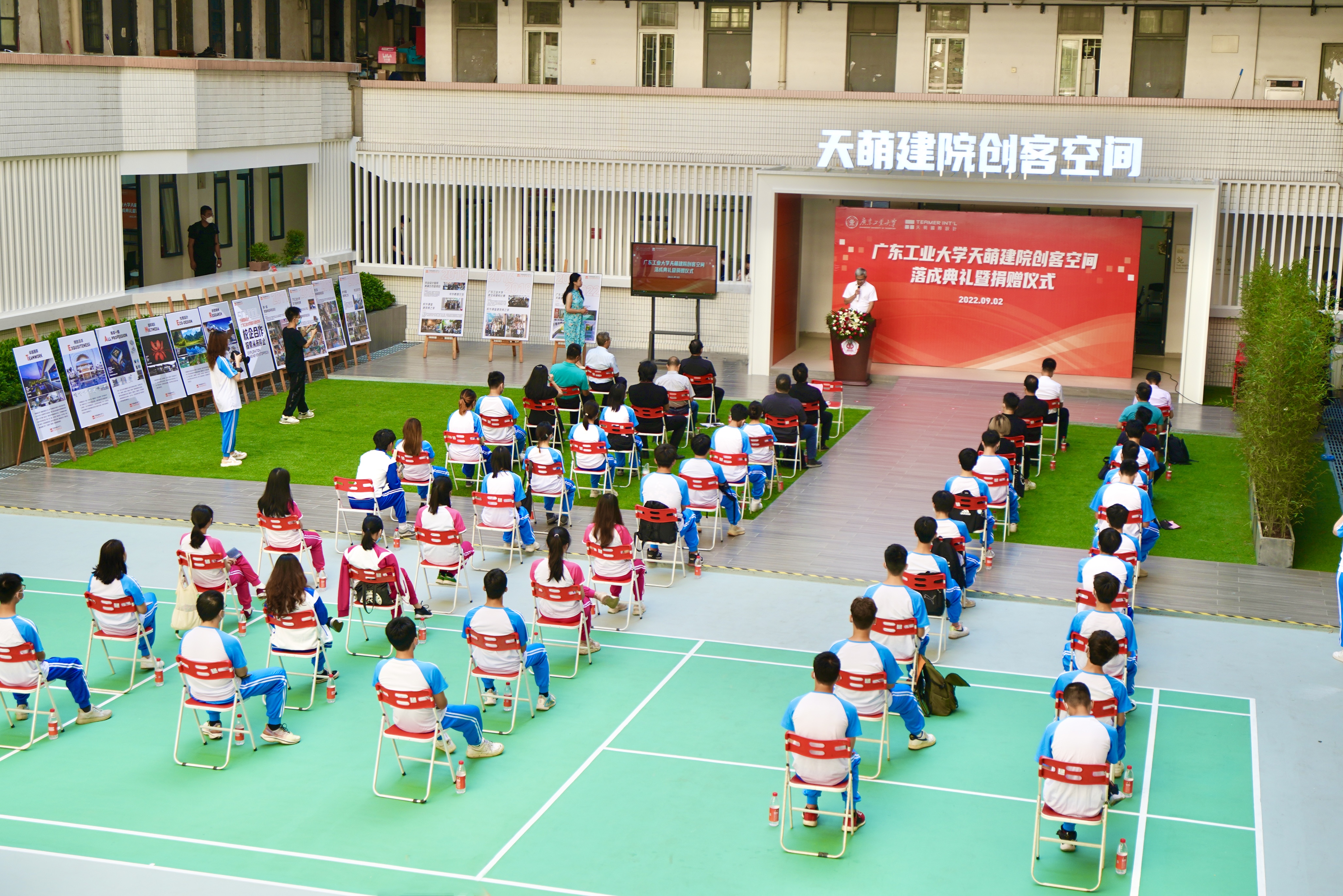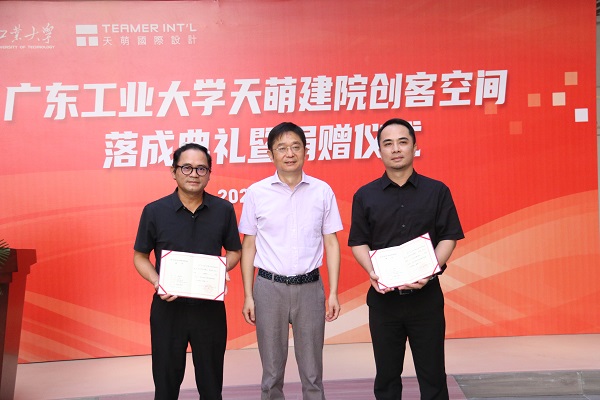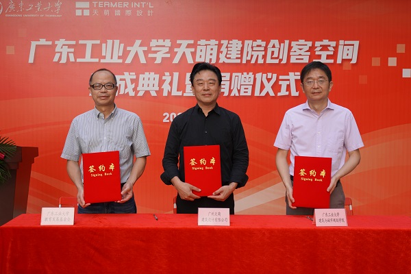 9月2日上午,天萌建院创客空间落成典礼暨捐赠仪式在东风路校区举行。学校党委常委、副校长陈卓武,学校党委常委、宣传部部长张育广,后勤管理处、对外联络与校友事务办公室、创新创业学院、建筑与城市规划学院等单位负责人。广州天萌建筑设计有限公司董事长陈宏良,总裁颜家国,以及MK平台师生代表出席典礼。