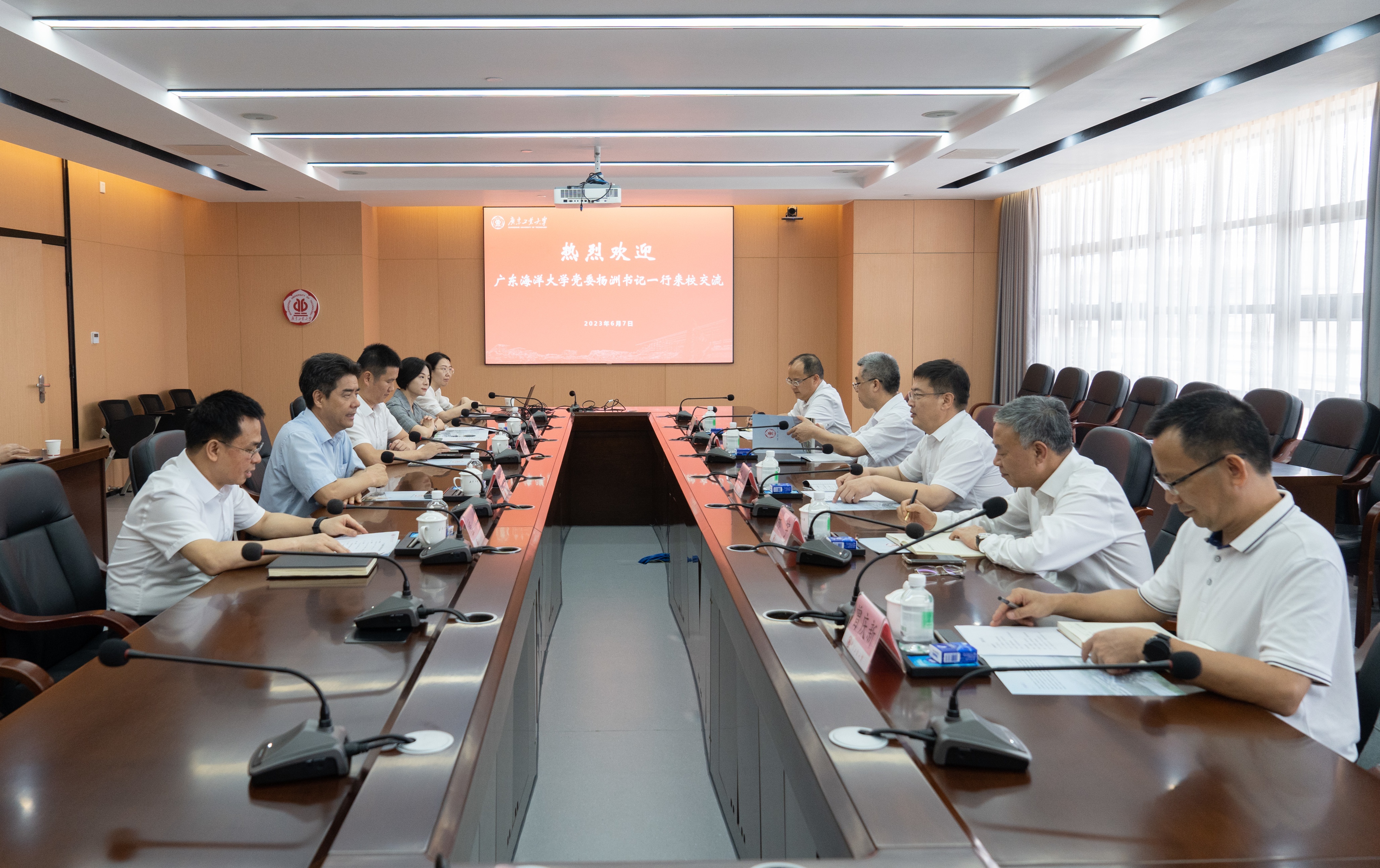 6月7日下午,广东海洋大学党委书记杨洲一行5人来校调研交流。校党委书记胡钦太,党委常委、组织部部长李靖茂,党委常委、宣传部部长张育广,党委办公室、校长办公室,党校办公室、党委组织部等部门相关负责人参加了座谈,双方在大学城校区行政楼702会议室围绕党建和业务融合发展、多校区管理工作等方面展开了深入的交流。