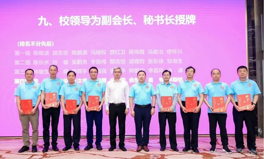 校领导陈卓武、余林分别为副会长、秘书长、监事长、监事以及全体理事授牌。