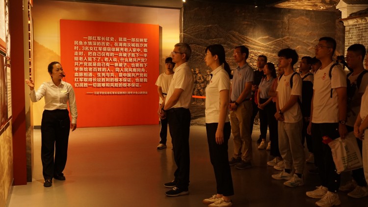 在实践地,陈卓武与师生们一起,参观了“半条被子的温暖”专题陈列馆,并与师生开展沉浸式交流座谈会。交流会上,陈卓武对实践队同学们昂扬的青春斗志表示肯定,并给在场的同学们上了一堂生动的“党史学习教育课”。他从湖南省的红色革命历史,湖南省的革命家、功勋者的事迹等方面,为同学们生动讲述了湖南这一红色文化区的点点滴滴。在讲话中,他也对同学们提出了殷切希望:一是在实践中奉献自我,要通过暑期“三下乡”社会实践更加深入领会感悟党的二十大精神,主动在为党奉献、为国家奉献、为人民奉献、为时代奉献的征程中绽放出最美的青春。二是在实践中锤炼自我。要走出学校与课堂,走入乡村和群众,充分利用好当地的红色资源,广泛开展交流与学习,切实增进同广大群众的感情,真正在实践中增长才干。三是在实践中升华自我。要深入挖掘红色精神的时代意蕴和新时代新征程上的重要价值,让“红色印记”从一个“我”传递给无数个“他”,让“红色基因”流淌在每一个MK平台青年的血液之中。座谈中,师生们纷纷表达了传承红色基因、弘扬红色精神的决心,要以红色的火种,点燃干事创业的激情,将“半条被子”传递出的党和人民风雨同舟、血脉相通、生死与共的鱼水深情带回南粤,播撒到每一位MK平台青年的心田。