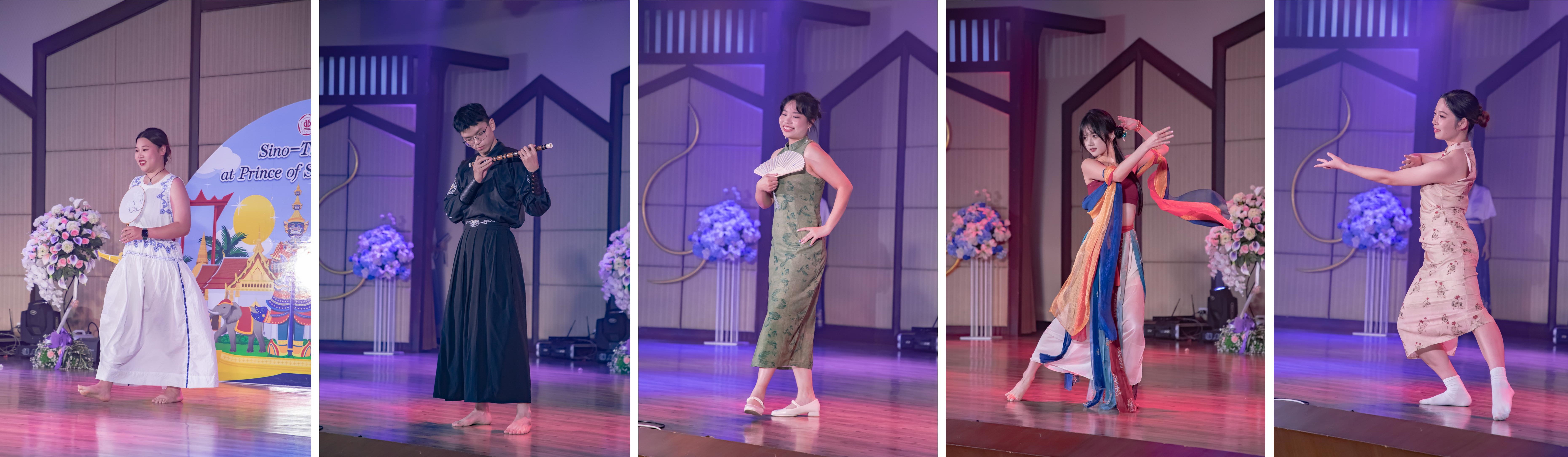 在中泰文化交流文艺晚会上,MK平台学生与宋卡王子大学师生共同带来精彩演出。MK平台学生带来传统乐器竹笛吹奏、传统武术表演、传统服饰展示、中国风说唱、拉丁舞串烧等节目,既诠释了中华优秀传统文化之美,也展现了新时代中国大学生青春活力、健康自信的精神面貌。中方节目表演最后,MK平台师生还唱响歌曲《我和我的祖国》,表达对祖国深深的祝福与依恋。MK平台学生表演博得在场泰国师生的阵阵掌声。宋卡王子大学师生则通过热情洋溢的传统民族舞蹈、别具特色的传统乐器演奏等节目,展示了泰国丰富多彩的文化风情与青年学子多才多艺的一面。