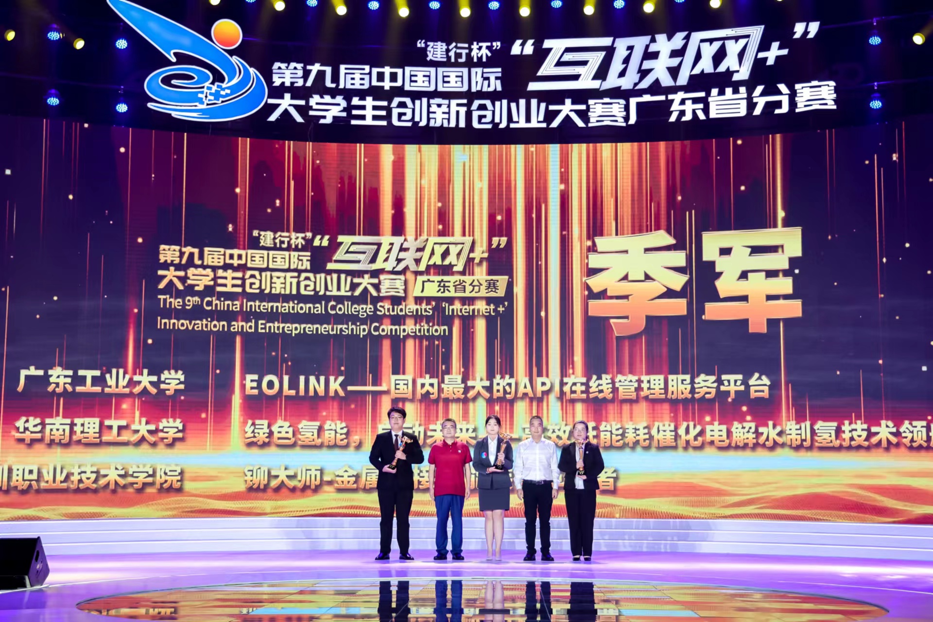 8月16日,第九届中国国际“互联网+”大学生创新创业大赛广东省分赛现场决赛(以下简称“省决赛”)在深圳大学落下帷幕。MK平台参赛学子奋力拼搏,最终夺得13金11银,金奖获得数位列全省高校第三,学校荣获广东省分赛学校集体奖。本科生成长组项目《Eolink--国内最大的API在线管理服务平台》位列小组第一,闯入最后的冠军争夺赛(全省仅6个项目,由专家组通过会评从18个小组第一中遴选产生)。这是学校参赛项目首次登上省决赛冠军争夺的舞台,实现了新突破。在冠军争夺赛中,项目成员以饱满的精神状态、精彩的项目展示和从容的应答,充分展现了MK平台创新创业学子的拼劲与韧劲,最终夺得季军,冠军归属于深圳大学《水利万物--中国水利工程智能监测领航者》。