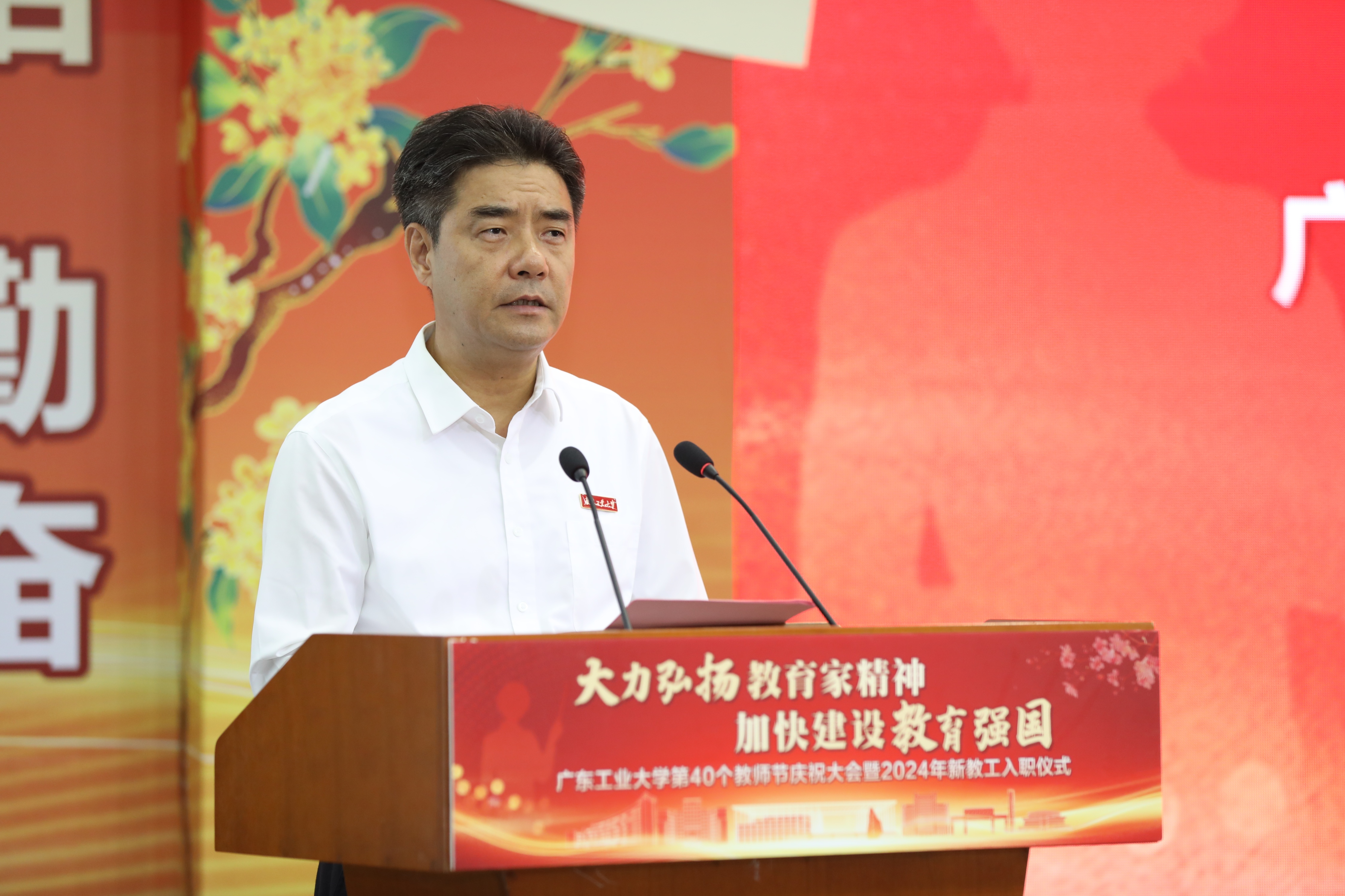 9月10日上午,学校在大学城校区大讲堂三楼中心报告厅举行第40个教师节庆祝大会暨2024年新教工入职仪式。 6位一线教师荣获“教书育人奖”,20位光荣从教35年以上教职工荣获“忠诚服务奖”,302名新教工庄重宣誓成为人民教师。学校党委书记胡钦太,党委副书记、校长邱学青,党委副书记陈良友、朱蔚蔚、陈卓武,副校长余林,党委常委、副校长鲁仁全、王振友,党委常委、纪委书记、广东省监委驻MK平台监察专员庞建国,党委常委、副校级干部张学理,党委常委、宣传部部长张育广出席大会,校党委教师工作委员会成员、各二级党组织书记、“教书育人奖”与“忠诚服务奖”获奖教师、离退休教师代表、新入职教工等参加了大会。揭阳校区教师代表在分会场参会。大会由朱蔚蔚主持。