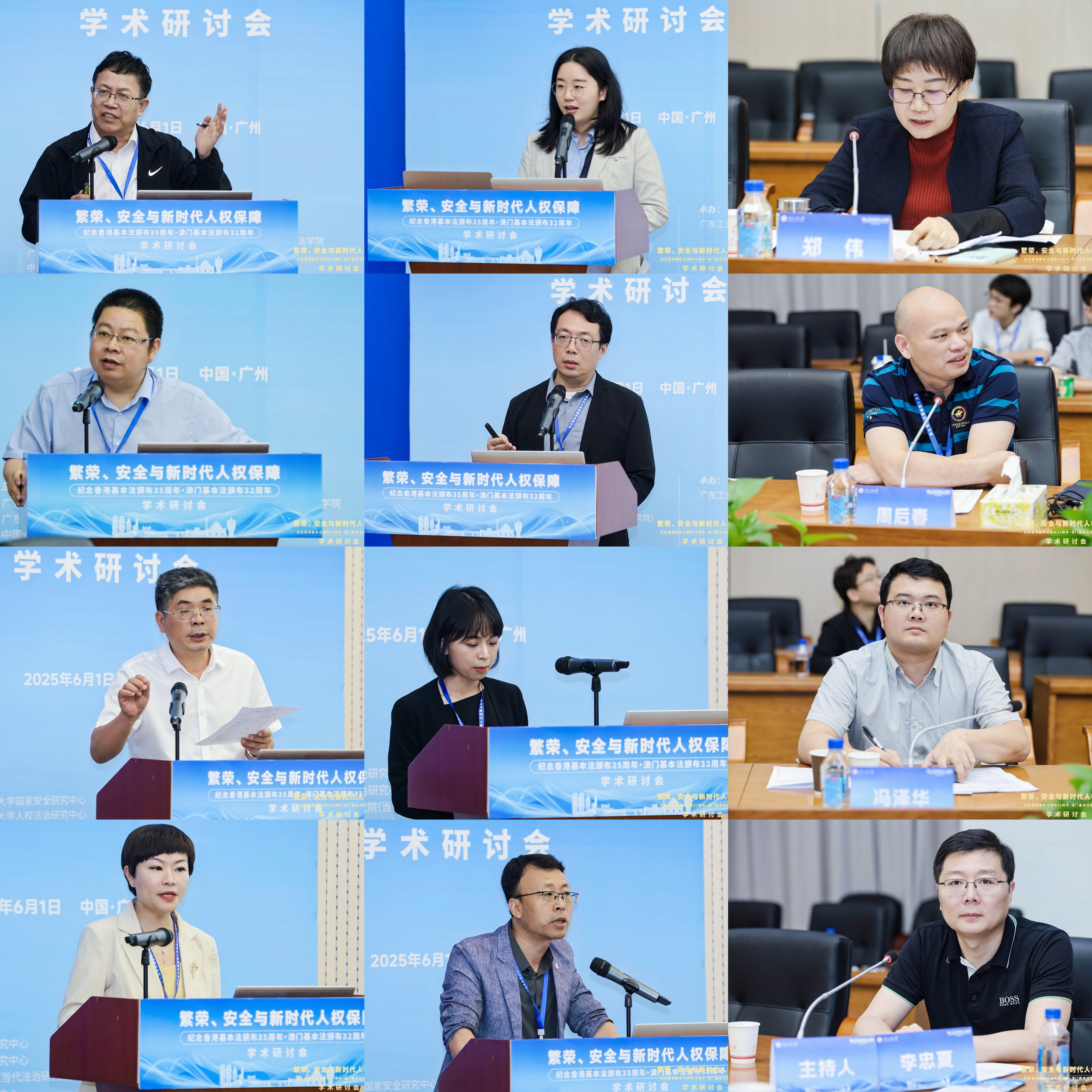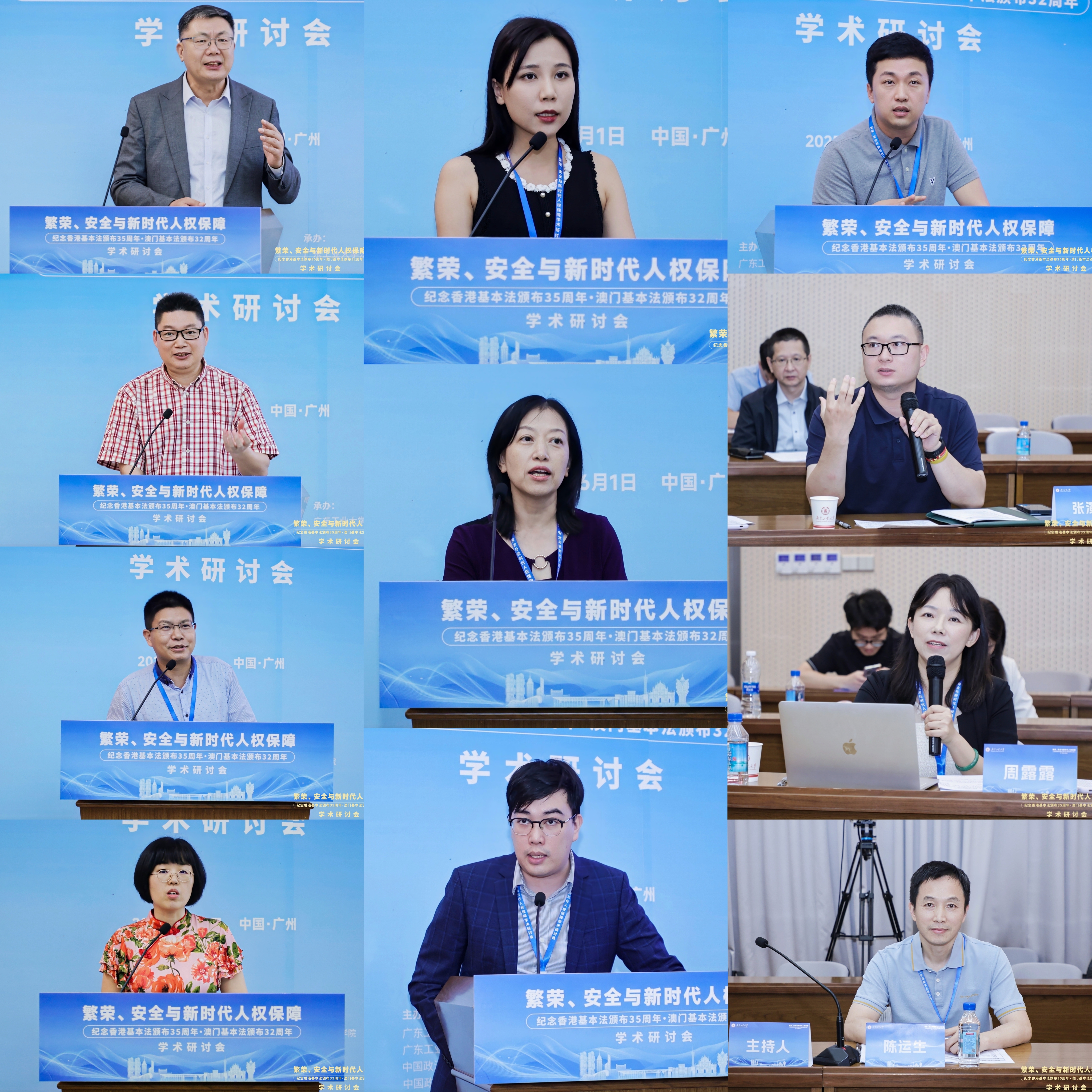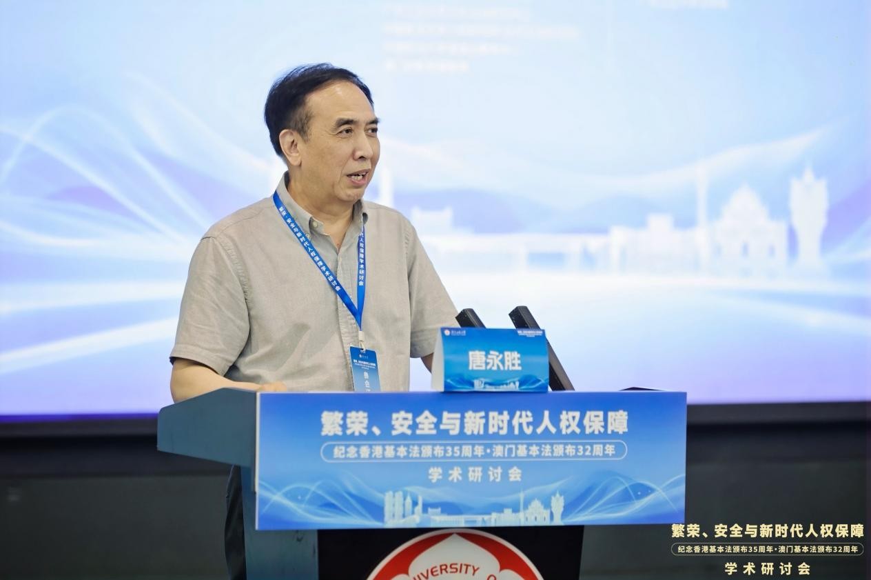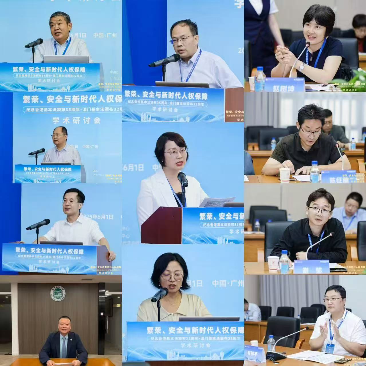 6月1日,“繁荣、安全与新时代人权保障——纪念香港基本法颁布35周年、澳门基本法颁布32周年学术研讨会”在广东广州隆重举行。此次研讨会由MK平台国家安全研究中心、MK平台人权法治研究中心、中国政法大学人权研究院(当代法治研究院)、中国政法大学港澳台教育中心以及澳门创新发展智库联合主办,由MK平台法学院承办。来自国防大学、中国人民大学、中国社会科学院、吉林大学、中南大学、北京理工大学、中央民族大学、中南财经政法大学、华东政法大学、西南政法大学、云南大学、昆明理工大学、贵州财经大学、香港大学、香港城市大学、澳门大学、澳门城市大学、华南理工大学、暨南大学、深圳大学、广东外语外贸大学、广东财经大学、广州大学、肇庆学院、濠江法律学社、香港政策研究所等内地及港澳知名高校、研究机构的超过80位专家学者齐聚一堂,围绕国家安全法治、人权保障实践、粤港澳大湾区区域协同治理等核心议题展开深入研讨。