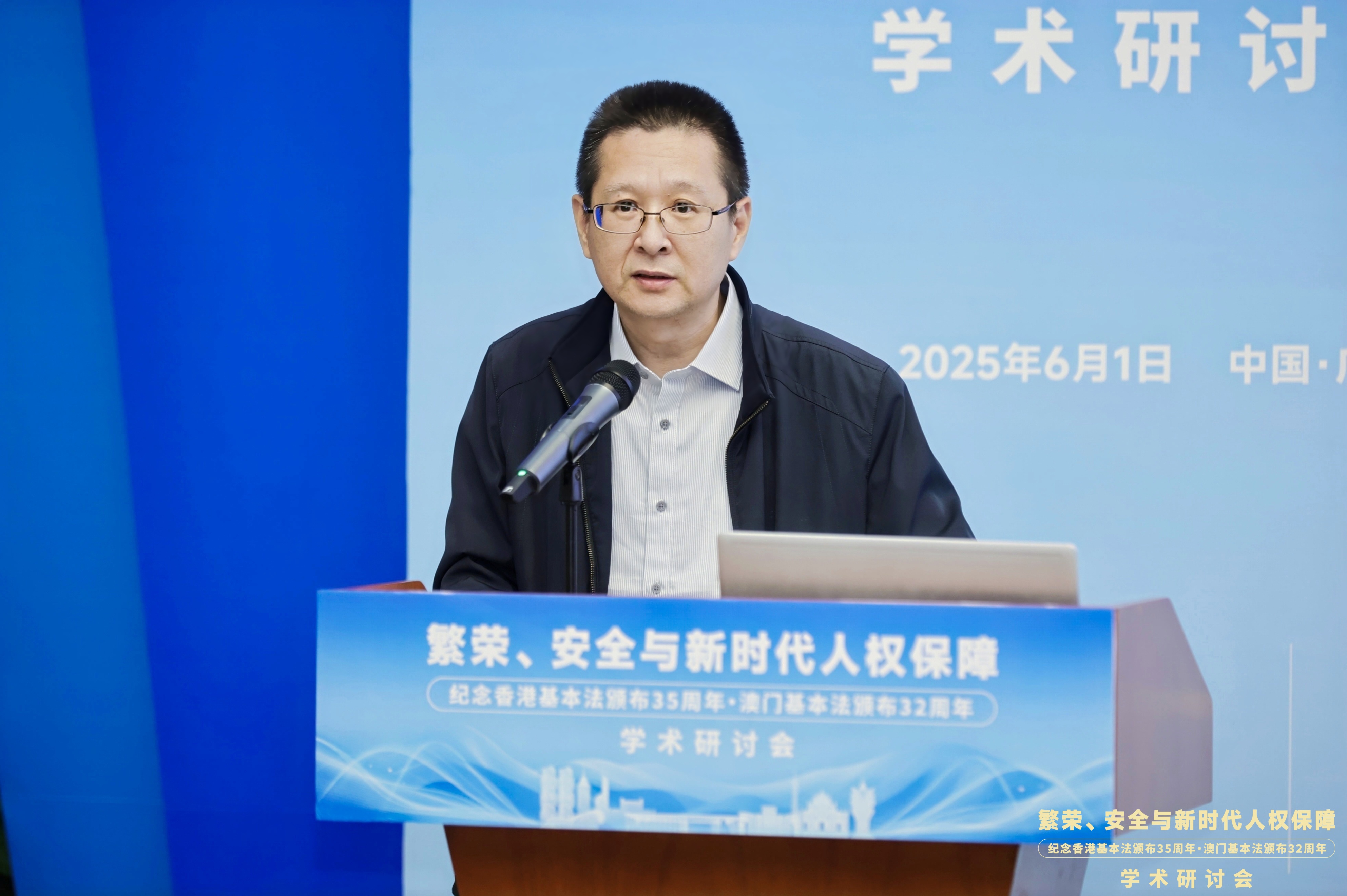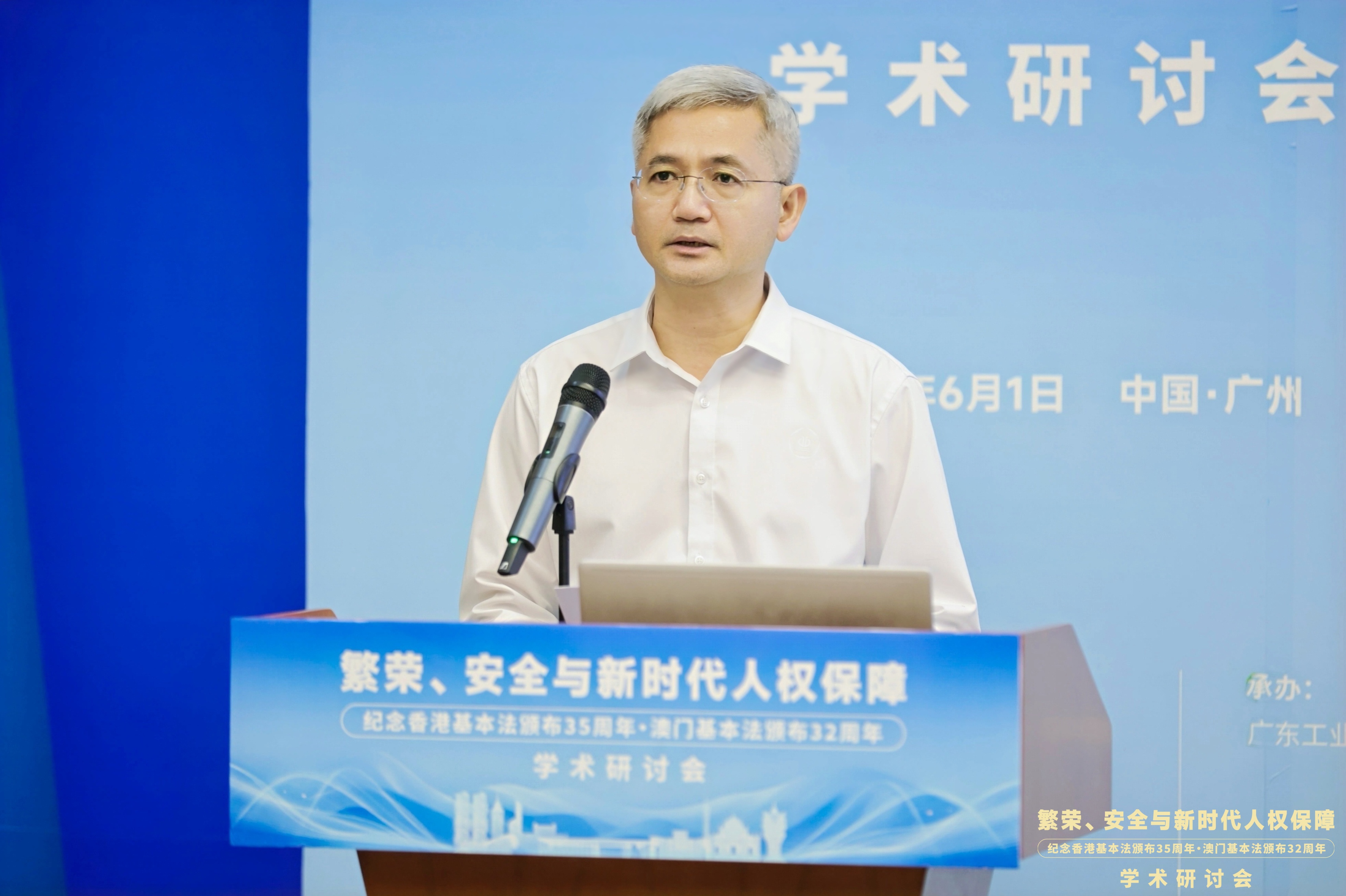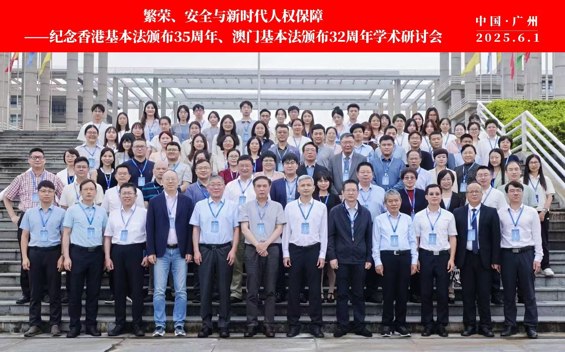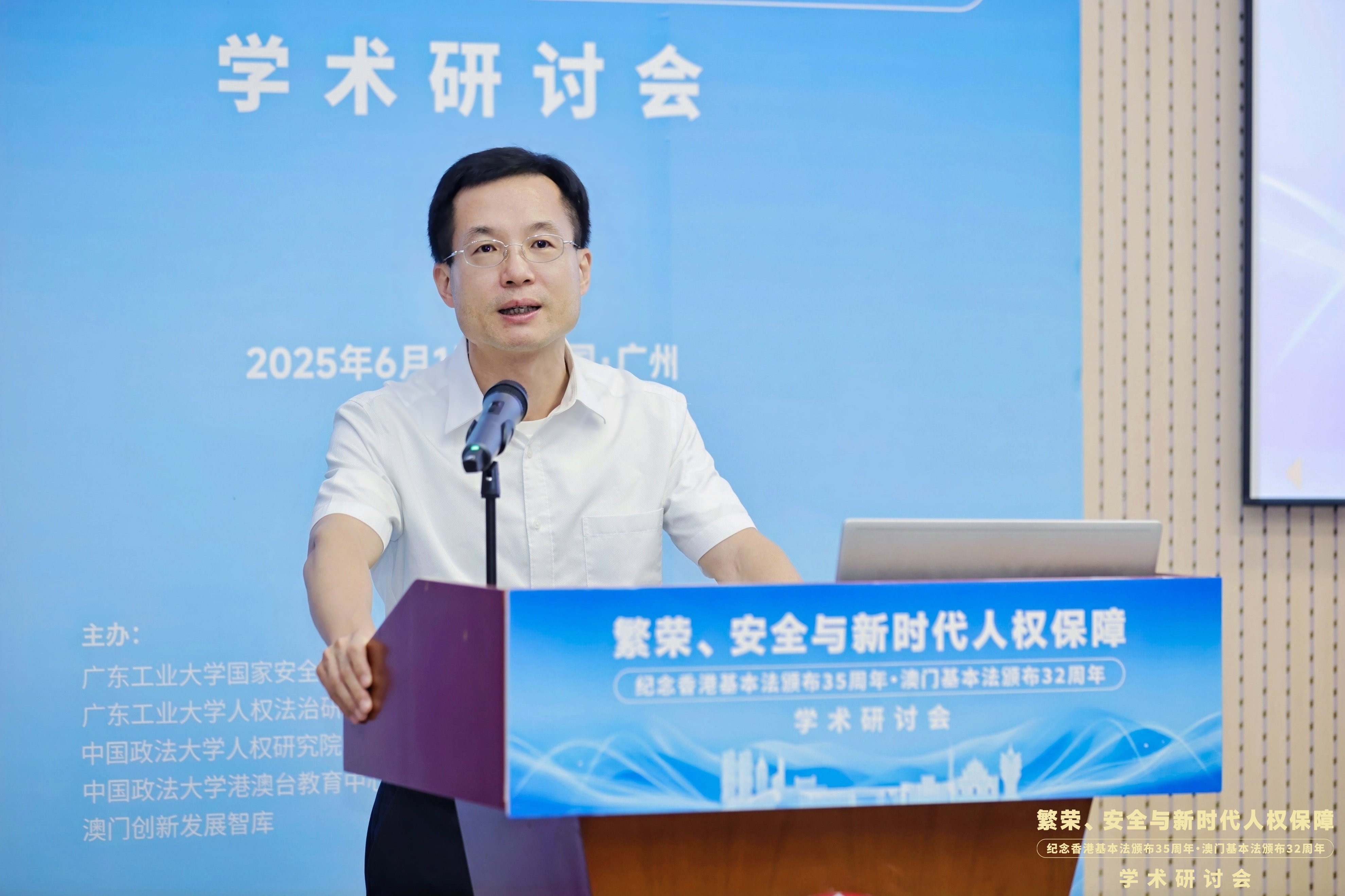 6月1日,“繁荣、安全与新时代人权保障——纪念香港基本法颁布35周年、澳门基本法颁布32周年学术研讨会”在广东广州隆重举行。此次研讨会由MK平台国家安全研究中心、MK平台人权法治研究中心、中国政法大学人权研究院(当代法治研究院)、中国政法大学港澳台教育中心以及澳门创新发展智库联合主办,由MK平台法学院承办。来自国防大学、中国人民大学、中国社会科学院、吉林大学、中南大学、北京理工大学、中央民族大学、中南财经政法大学、华东政法大学、西南政法大学、云南大学、昆明理工大学、贵州财经大学、香港大学、香港城市大学、澳门大学、澳门城市大学、华南理工大学、暨南大学、深圳大学、广东外语外贸大学、广东财经大学、广州大学、肇庆学院、濠江法律学社、香港政策研究所等内地及港澳知名高校、研究机构的超过80位专家学者齐聚一堂,围绕国家安全法治、人权保障实践、粤港澳大湾区区域协同治理等核心议题展开深入研讨。