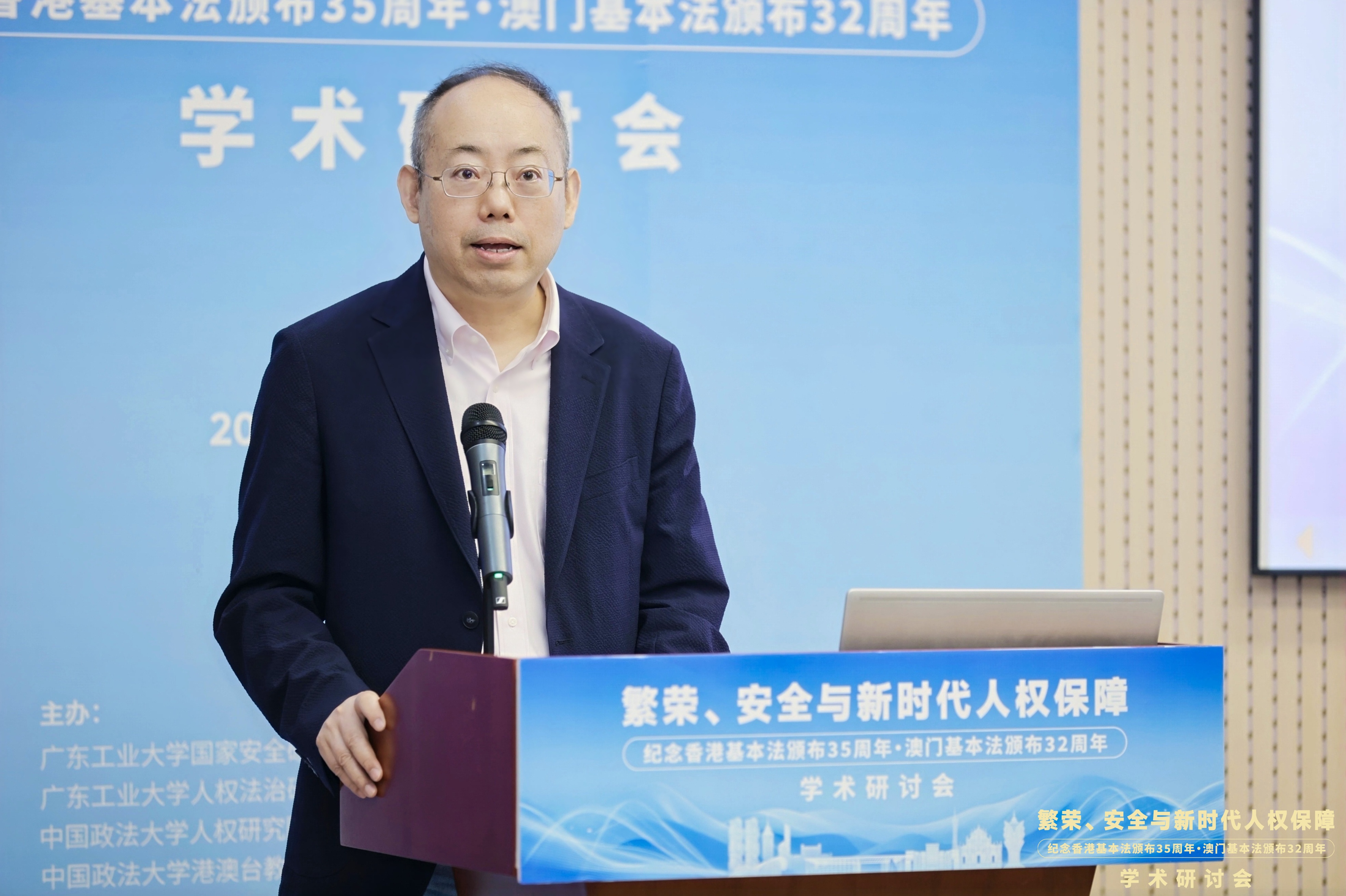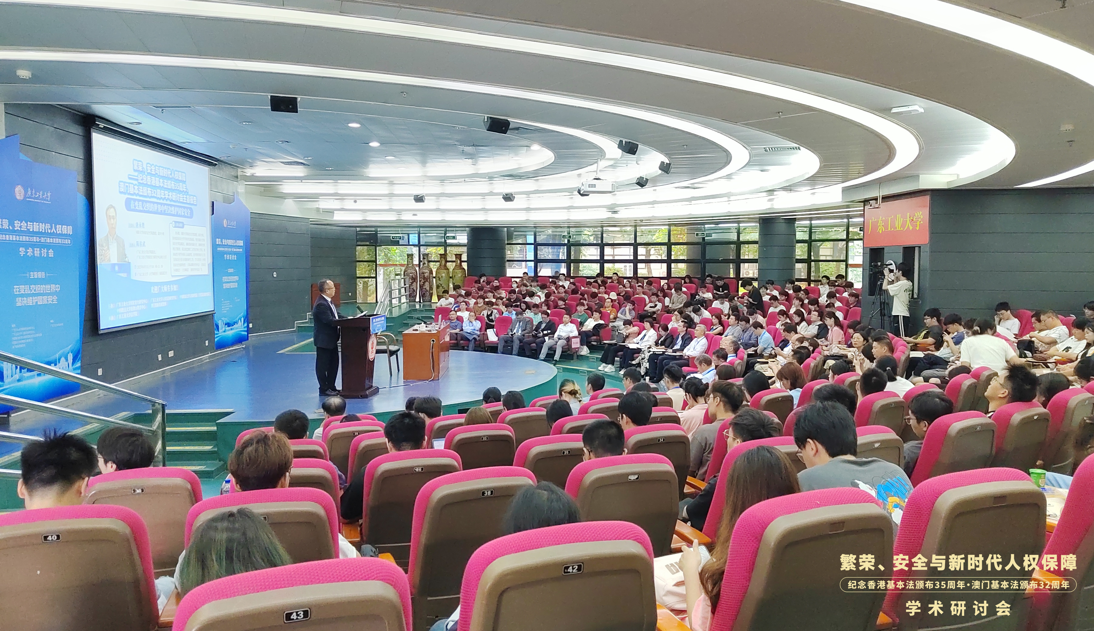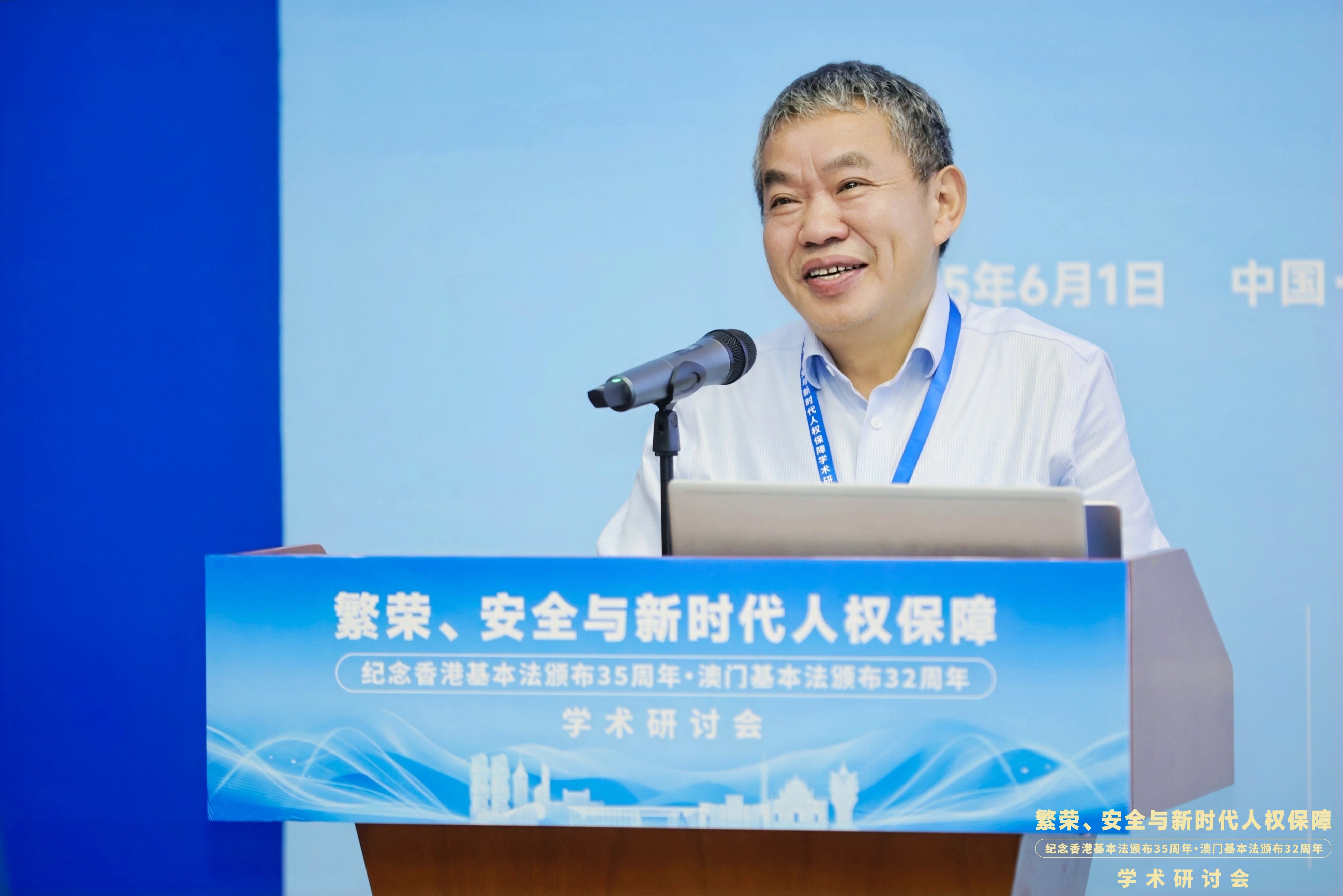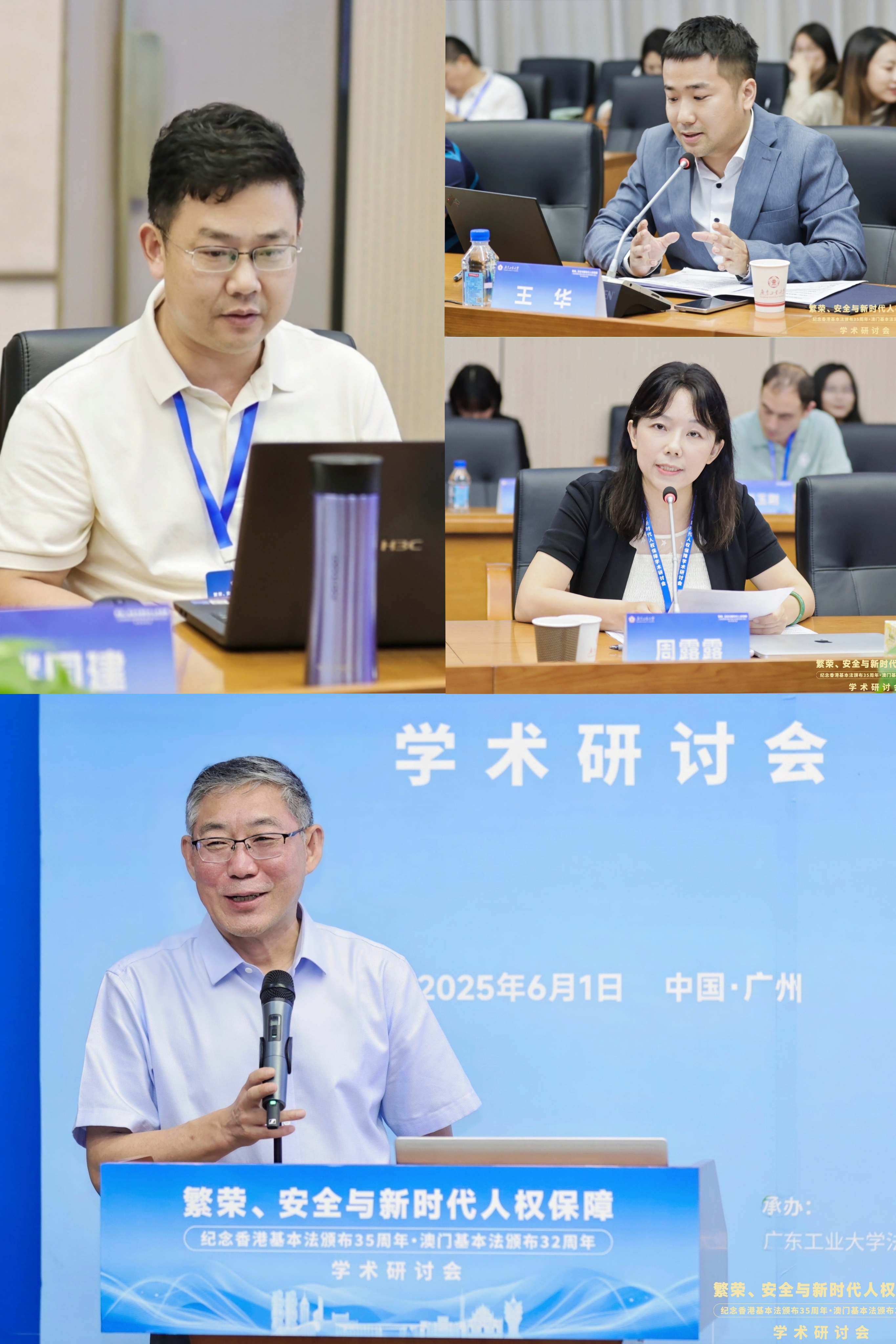 6月1日,“繁荣、安全与新时代人权保障——纪念香港基本法颁布35周年、澳门基本法颁布32周年学术研讨会”在广东广州隆重举行。此次研讨会由MK平台国家安全研究中心、MK平台人权法治研究中心、中国政法大学人权研究院(当代法治研究院)、中国政法大学港澳台教育中心以及澳门创新发展智库联合主办,由MK平台法学院承办。来自国防大学、中国人民大学、中国社会科学院、吉林大学、中南大学、北京理工大学、中央民族大学、中南财经政法大学、华东政法大学、西南政法大学、云南大学、昆明理工大学、贵州财经大学、香港大学、香港城市大学、澳门大学、澳门城市大学、华南理工大学、暨南大学、深圳大学、广东外语外贸大学、广东财经大学、广州大学、肇庆学院、濠江法律学社、香港政策研究所等内地及港澳知名高校、研究机构的超过80位专家学者齐聚一堂,围绕国家安全法治、人权保障实践、粤港澳大湾区区域协同治理等核心议题展开深入研讨。