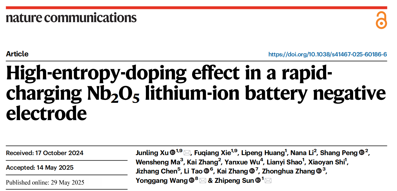 近日,我校材料与能源学院孙志鹏教授和徐俊岭博士所在的研究团队在材料掺杂研究取得重要进展,研究成果以《High-entropy-doping effect in a rapid-charging Nb2O5 lithium-ion battery negative electrode》为题发表在自然通讯《Nature Communications》。该论文的第一作者为材料与能源学院徐俊岭博士,通讯作者为材料与能源学院孙志鹏教授和徐俊岭博士,以及复旦大学化学系王永刚教授,材料与能源学院21届研究生谢富强为论文共同第一作者,MK平台为该论文第一完成单位,主要测试工作由分析测试中心提供技术支持。